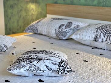 Az Apartman 4 főt tud fogadni. Az ágyak a/az 2 hálószobában vannak, melynek méretei 41m2. A forró nyári estéket a vendégek saját teraszukon élvezhetik. A közös barbecue-helyet a vendég szabadon használhatja. A szállásegységbe lehetséges háziállatot hozni felár ellenében.