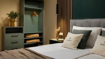Az Apartman 5 főt tud fogadni. Az ágyak a/az 2 hálószobában, és a nappaliban/ben vannak, melynek méretei 64m2. A forró nyári estéket a vendégek saját teraszukon élvezhetik. Az apartmanból tengerre néző kilátás nyílik. A vendégek itt tartózkodásuk ideje alatt használhatják a közös medencét.