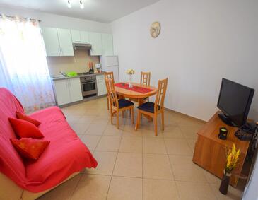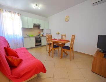 Az Apartman 5 főt tud fogadni. Az ágyak a/az 2 hálószobában, és a nappaliban/ben vannak, melynek méretei 60m2. A forró nyári estéket a vendégek saját teraszukon élvezhetik. Az apartmanból tengerre néző kilátás nyílik. A közös barbecue-helyet a vendég szabadon használhatja. A szállásegységbe lehetséges háziállatot hozni felár ellenében.