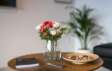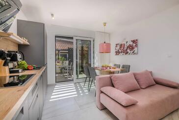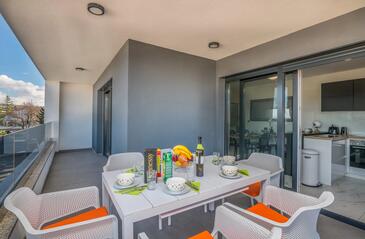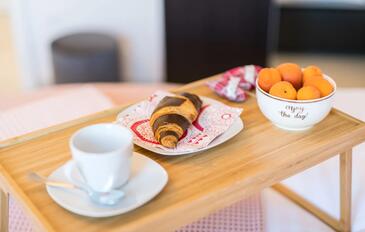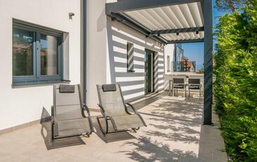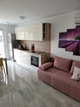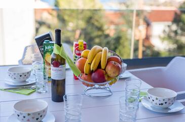 Az Apartman 4 főt tud fogadni. Az ágyak a/az 2 hálószobában vannak, melynek méretei 80m2. A forró nyári estéket a vendégek saját teraszukon élvezhetik. Az apartmanból tengerre néző kilátás nyílik.
