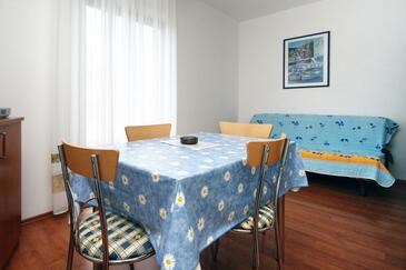 Az Apartman 4 főt tud fogadni. Az ágyak a/az 1 hálószobában, és a étkezőban/ben vannak, melynek méretei 33m2. A forró nyári estéket a vendégek saját balkonukon élvezhetik. Az apartmanból tengerre néző kilátás nyílik. A közös barbecue-helyet a vendég szabadon használhatja. A lefoglalt szállásegység közös teraszt használ..