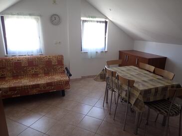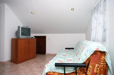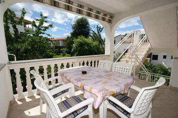 Az Apartman 4 főt tud fogadni. Az ágyak a/az 1 hálószobában, és a étkezőban/ben vannak, melynek méretei 33m2. A forró nyári estéket a vendégek saját balkonukon élvezhetik. Az apartmanból tengerre néző kilátás nyílik. A közös barbecue-helyet a vendég szabadon használhatja. A lefoglalt szállásegység közös teraszt használ..
