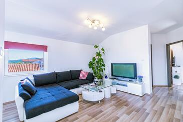 Az Apartman 4 főt tud fogadni. Az ágyak a/az 2 hálószobában vannak, melynek méretei 56m2. A forró nyári estéket a vendégek saját balkonukon élvezhetik. Az apartmanból tengerre néző kilátás nyílik. A közös barbecue-helyet a vendég szabadon használhatja.