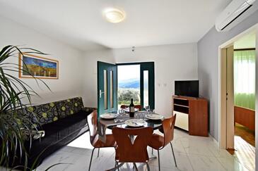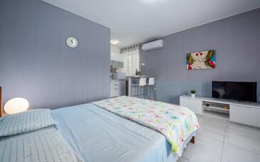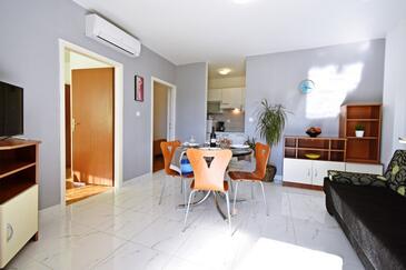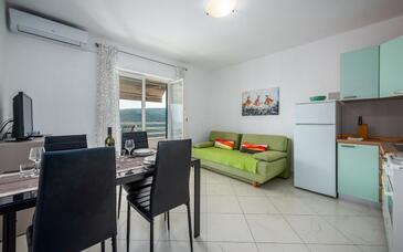 Az Apartman 6 főt tud fogadni. Az ágyak a/az 2 hálószobában, és a nappaliban/ben vannak, melynek méretei 46m2. A forró nyári estéket a vendégek saját teraszukon élvezhetik. Az apartmanból tengerre néző kilátás nyílik. A közös barbecue-helyet a vendég szabadon használhatja. A szállásegységbe lehetséges háziállatot hozni felár ellenében.