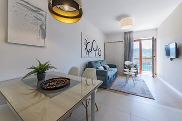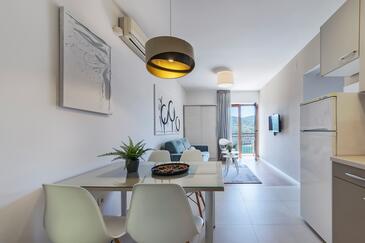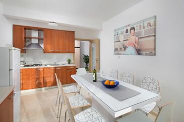 Az Apartman 8 főt tud fogadni. Az ágyak a/az 4 hálószobában vannak, melynek méretei 90m2. A forró nyári estéket a vendégek saját balkonukon élvezhetik. Az apartmanból tengerre néző kilátás nyílik. A közös barbecue-helyet a vendég szabadon használhatja. A szállásegységbe lehetséges háziállatot hozni felár ellenében.