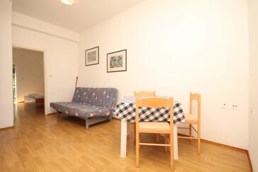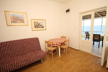 Az Apartman 3 főt tud fogadni. Az ágyak a/az 1 hálószobában, és a étkezőban/ben vannak, melynek méretei 30m2. Az apartmanból tengerre néző kilátás nyílik. A közös barbecue-helyet a vendég szabadon használhatja. A lefoglalt szállásegység közös teraszt használ..