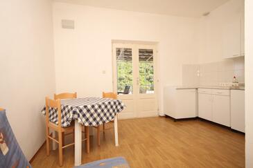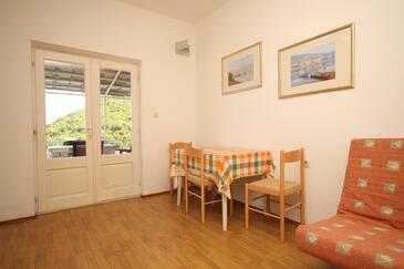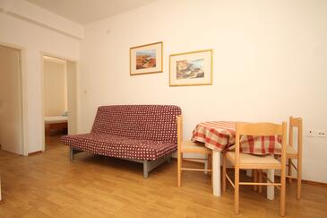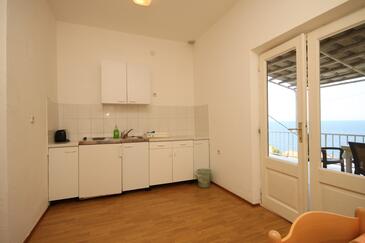 Az Apartman 3 főt tud fogadni. Az ágyak a/az 1 hálószobában, és a étkezőban/ben vannak, melynek méretei 30m2. Az apartmanból tengerre néző kilátás nyílik. A közös barbecue-helyet a vendég szabadon használhatja. A lefoglalt szállásegység közös teraszt használ..