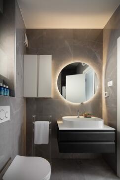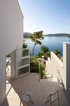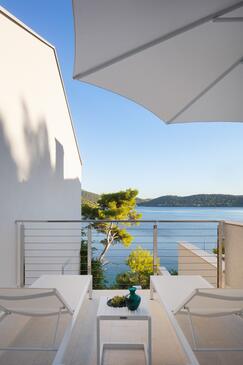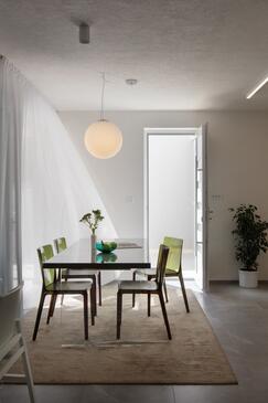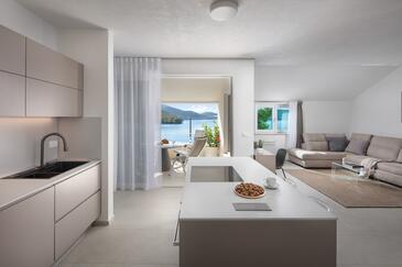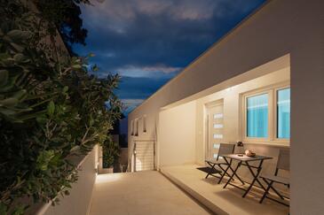 Az Apartman 5 főt tud fogadni. Az ágyak a/az 2 hálószobában, és a nappaliban/ben vannak, melynek méretei 62m2. A forró nyári estéket a vendégek saját teraszukon élvezhetik. Az apartmanból tengerre néző kilátás nyílik. A közös barbecue-helyet a vendég szabadon használhatja. A szállásegységbe lehetséges háziállatot hozni, ennek költségét a foglalási díj tartalmazza.