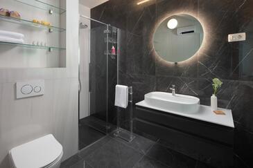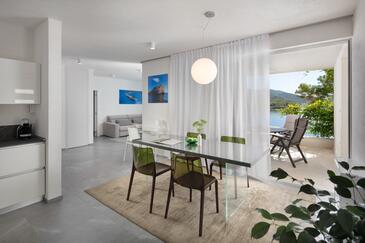 Az Apartman 5 főt tud fogadni. Az ágyak a/az 2 hálószobában, és a nappaliban/ben vannak, melynek méretei 62m2. A forró nyári estéket a vendégek saját teraszukon élvezhetik. Az apartmanból tengerre néző kilátás nyílik. A közös barbecue-helyet a vendég szabadon használhatja. A szállásegységbe lehetséges háziállatot hozni, ennek költségét a foglalási díj tartalmazza.