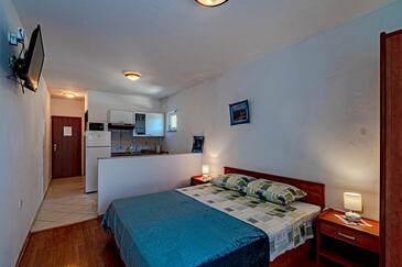 Az Stúdió 2 főt tud fogadni. Az ágyak a/az 1 hálószobában vannak, melynek méretei 23m2. A forró nyári estéket a vendégek saját teraszukon élvezhetik. A stúdióból tengerre néző kilátás nyílik. A közös barbecue-helyet a vendég szabadon használhatja. A szállásegységbe lehetséges háziállatot hozni felár ellenében.