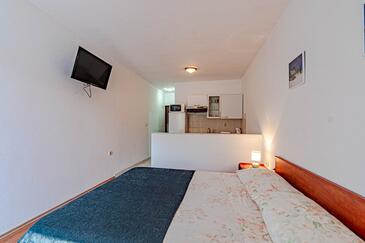 Az Stúdió 2 főt tud fogadni. Az ágyak a/az 1 hálószobában vannak, melynek méretei 23m2. A forró nyári estéket a vendégek saját teraszukon élvezhetik. A stúdióból tengerre néző kilátás nyílik. A közös barbecue-helyet a vendég szabadon használhatja. A szállásegységbe lehetséges háziállatot hozni felár ellenében.