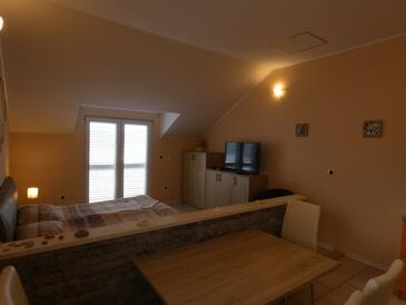 Az Stúdió 2 főt tud fogadni. Az ágyak a/az 1 hálószobában vannak, melynek méretei 22m2. A forró nyári estéket a vendégek saját teraszukon élvezhetik. A stúdióból tengerre néző kilátás nyílik. A közös barbecue-helyet a vendég szabadon használhatja. A szállásegységbe lehetséges háziállatot hozni felár ellenében.