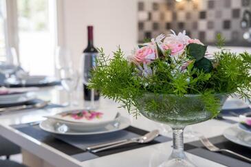 Az Apartman 6 főt tud fogadni. Az ágyak a/az 3 hálószobában vannak, melynek méretei 103m2. A forró nyári estéket a vendégek saját teraszukon élvezhetik. A teljes élvezet és kikapcsolódás érdekében van saját barbecue hely is, csakis e szálláshely vendégei számára.
