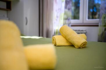 Az Apartman 4 főt tud fogadni. Az ágyak a/az 2 hálószobában vannak, melynek méretei 39m2. A forró nyári estéket a vendégek saját teraszukon élvezhetik. Az apartmanból tengerre néző kilátás nyílik. A közös barbecue-helyet a vendég szabadon használhatja. A szállásegységbe lehetséges háziállatot hozni felár ellenében. A lefoglalt szállásegység teraszán áthaladnak más vendégek, vagy a tulajdonosok. A lefoglalt szállásegység vendégeinek az érkezés napján a helyszínen letétet kell fizetniük (az összeg a honlapon fel van tüntetve).