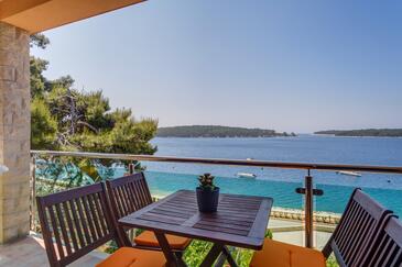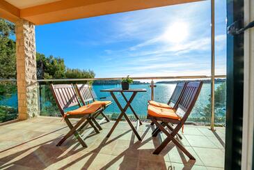 Az Apartman 4 főt tud fogadni. Az ágyak a/az 2 hálószobában vannak, melynek méretei 39m2. A forró nyári estéket a vendégek saját teraszukon élvezhetik. Az apartmanból tengerre néző kilátás nyílik. A közös barbecue-helyet a vendég szabadon használhatja. A szállásegységbe lehetséges háziállatot hozni felár ellenében. A lefoglalt szállásegység teraszán áthaladnak más vendégek, vagy a tulajdonosok. A lefoglalt szállásegység vendégeinek az érkezés napján a helyszínen letétet kell fizetniük (az összeg a honlapon fel van tüntetve).