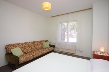 Az Apartman 6 főt tud fogadni. Az ágyak a/az 2 hálószobában, és a étkezőban/ben vannak, melynek méretei 79m2. A forró nyári estéket a vendégek saját teraszukon élvezhetik. A közös barbecue-helyet a vendég szabadon használhatja. A lefoglalt szállásegység teraszán áthaladnak más vendégek, vagy a tulajdonosok.