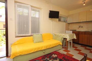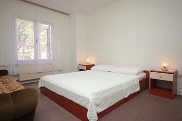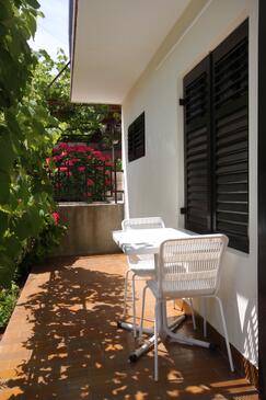 Az Apartman 6 főt tud fogadni. Az ágyak a/az 2 hálószobában, és a étkezőban/ben vannak, melynek méretei 79m2. A forró nyári estéket a vendégek saját teraszukon élvezhetik. A közös barbecue-helyet a vendég szabadon használhatja. A lefoglalt szállásegység teraszán áthaladnak más vendégek, vagy a tulajdonosok.