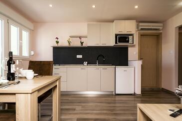 Az Stúdió 2 főt tud fogadni. Az ágyak a/az 1 hálószobában vannak, melynek méretei 44m2. A forró nyári estéket a vendégek saját teraszukon élvezhetik. A stúdióból tengerre néző kilátás nyílik.