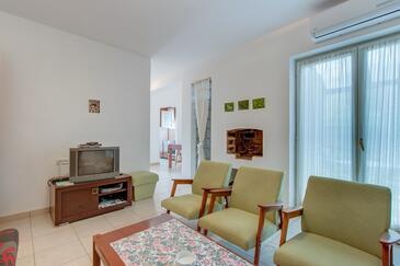 Az Apartman 5 főt tud fogadni. Az ágyak a/az 1 hálószobában, és a étkezőban/ben vannak, melynek méretei 38m2. A forró nyári estéket a vendégek saját teraszukon élvezhetik. Az apartmanból tengerre néző kilátás nyílik. A közös barbecue-helyet a vendég szabadon használhatja. A szállásegységbe lehetséges háziállatot hozni felár ellenében.