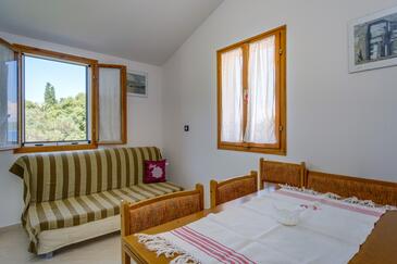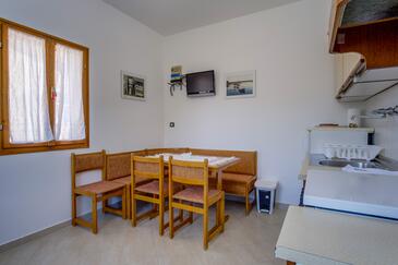 Az Apartman 3 főt tud fogadni. Az ágyak a/az 1 hálószobában, és a étkezőban/ben vannak, melynek méretei 29m2. A forró nyári estéket a vendégek saját teraszukon élvezhetik. Az apartmanból tengerre néző kilátás nyílik. A közös barbecue-helyet a vendég szabadon használhatja. A szállásegységbe lehetséges háziállatot hozni felár ellenében.