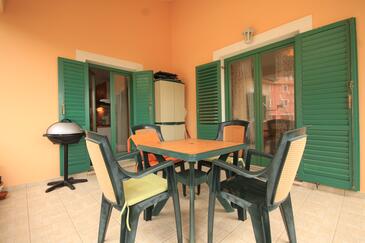 Az Apartman 4 főt tud fogadni. Az ágyak a/az 1 hálószobában, és a étkezőban/ben vannak, melynek méretei 43m2. A forró nyári estéket a vendégek saját teraszukon élvezhetik. Az apartmanból tengerre néző kilátás nyílik. A közös barbecue-helyet a vendég szabadon használhatja. A szállásegységbe lehetséges háziállatot hozni felár ellenében.
