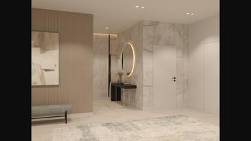 1 nappali, 1 étkező, 1 konyha, 4 hálószoba, 6 fürdőszoba, 1 wc, 1 társalgó, 2 terasz, 2 erkély