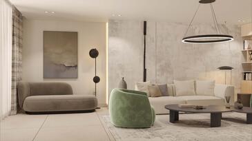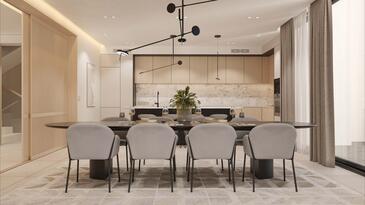Az Ház 8 főt tud fogadni. Az ágyak a/az 4 hálószobában vannak, melynek méretei 211m2. A forró nyári estéket a vendégek saját teraszukon élvezhetik. A házból tengerre néző kilátás nyílik. A teljes élvezet és kikapcsolódás érdekében van saját barbecue hely is, csakis e szálláshely vendégei számára. A vendégek itt tartózkodásuk ideje alatt kikapcsolódás céljából használhatják a magán medencét. A szállásegységbe lehetséges háziállatot hozni felár ellenében.
