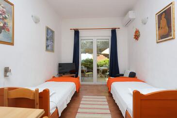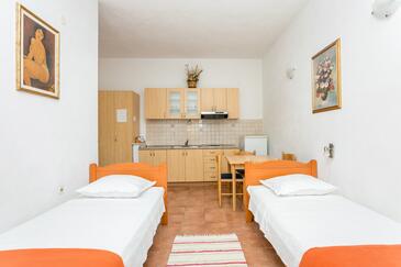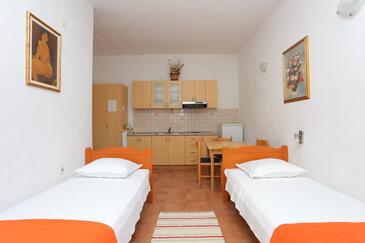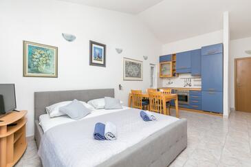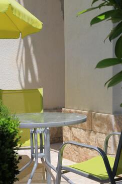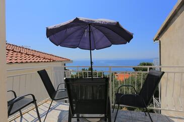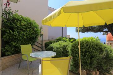 Az Apartman 6 főt tud fogadni. Az ágyak a/az 2 hálószobában vannak, melynek méretei 57m2. A forró nyári estéket a vendégek saját teraszukon élvezhetik. Az apartmanból tengerre néző kilátás nyílik. A közös barbecue-helyet a vendég szabadon használhatja.