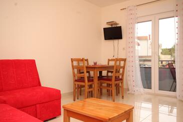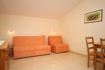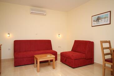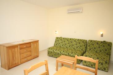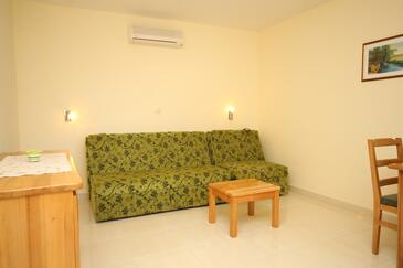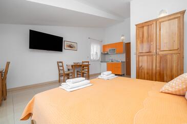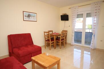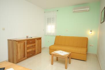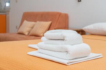 Az Apartman 4 főt tud fogadni. Az ágyak a/az 1 hálószobában, és a nappaliban/ben vannak, melynek méretei 37m2. A forró nyári estéket a vendégek saját balkonukon élvezhetik. Az apartmanból tengerre néző kilátás nyílik. A közös barbecue-helyet a vendég szabadon használhatja.