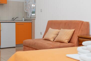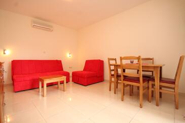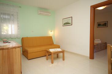 Az Apartman 4 főt tud fogadni. Az ágyak a/az 1 hálószobában, és a nappaliban/ben vannak, melynek méretei 37m2. A forró nyári estéket a vendégek saját balkonukon élvezhetik. Az apartmanból tengerre néző kilátás nyílik. A közös barbecue-helyet a vendég szabadon használhatja.