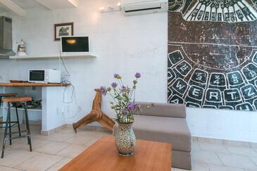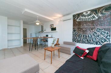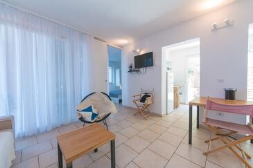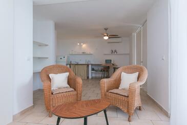 Az Apartman 6 főt tud fogadni. Az ágyak a/az 2 hálószobában, és a nappaliban/ben vannak, melynek méretei 58m2. A forró nyári estéket a vendégek saját teraszukon élvezhetik. Az apartmanból tengerre néző kilátás nyílik. A közös barbecue-helyet a vendég szabadon használhatja. A szállásegységbe lehetséges háziállatot hozni felár ellenében.