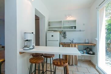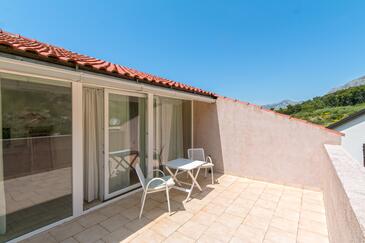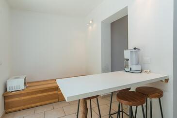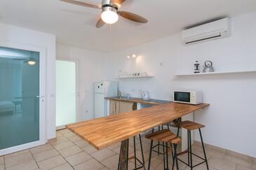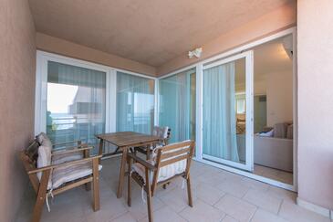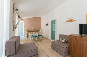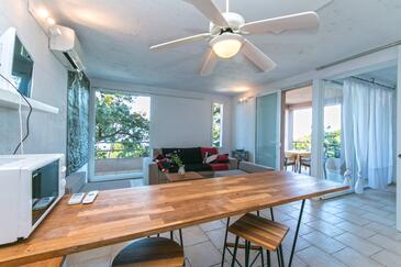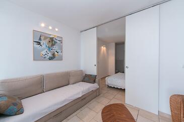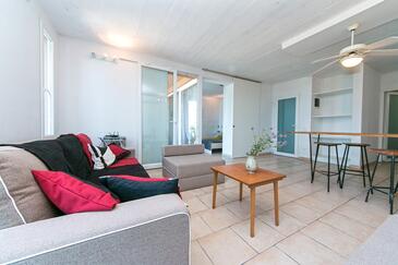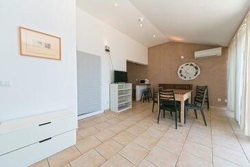 Az Apartman 6 főt tud fogadni. Az ágyak a/az 2 hálószobában, és a nappaliban/ben vannak, melynek méretei 58m2. A forró nyári estéket a vendégek saját teraszukon élvezhetik. Az apartmanból tengerre néző kilátás nyílik. A közös barbecue-helyet a vendég szabadon használhatja. A szállásegységbe lehetséges háziállatot hozni felár ellenében.