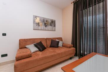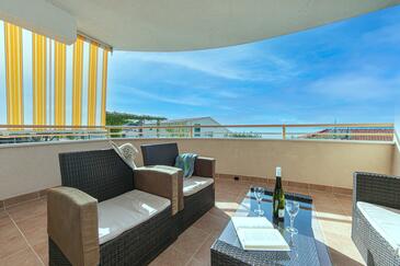 Az Apartman 4 főt tud fogadni. Az ágyak a/az 2 hálószobában vannak, melynek méretei 50m2. A forró nyári estéket a vendégek saját teraszukon élvezhetik. Az apartmanból tengerre néző kilátás nyílik. A közös barbecue-helyet a vendég szabadon használhatja. A vendégek itt tartózkodásuk ideje alatt használhatják a közös medencét. A szállásegységbe lehetséges háziállatot hozni felár ellenében.