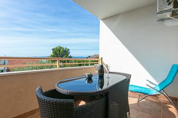 Az Apartman 4 főt tud fogadni. Az ágyak a/az 2 hálószobában vannak, melynek méretei 50m2. A forró nyári estéket a vendégek saját teraszukon élvezhetik. Az apartmanból tengerre néző kilátás nyílik. A közös barbecue-helyet a vendég szabadon használhatja. A vendégek itt tartózkodásuk ideje alatt használhatják a közös medencét. A szállásegységbe lehetséges háziállatot hozni felár ellenében.