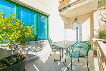 Az Apartman 6 főt tud fogadni. Az ágyak a/az 2 hálószobában, és a nappaliban/ben vannak, melynek méretei 68m2. A forró nyári estéket a vendégek saját teraszukon élvezhetik. Az apartmanból tengerre néző kilátás nyílik. A teljes élvezet és kikapcsolódás érdekében van saját barbecue hely is, csakis e szálláshely vendégei számára.