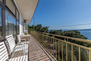 Az Apartman 4 főt tud fogadni. Az ágyak a/az 1 hálószobában, és a nappaliban/ben vannak, melynek méretei 38m2. A forró nyári estéket a vendégek saját teraszukon élvezhetik. Az apartmanból tengerre néző kilátás nyílik. A közös barbecue-helyet a vendég szabadon használhatja. A lefoglalt szállásegység közös erkélyt használ..