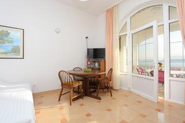 Az Apartman 3 főt tud fogadni. Az ágyak a/az 1 hálószobában, és a étkezőban/ben vannak, melynek méretei 33m2. A forró nyári estéket a vendégek saját teraszukon élvezhetik. Az apartmanból tengerre néző kilátás nyílik. A szállásegységbe lehetséges háziállatot hozni, ennek költségét a foglalási díj tartalmazza.