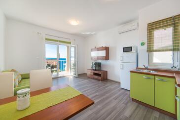Az Apartman 4 főt tud fogadni. Az ágyak a/az 1 hálószobában, és a nappaliban/ben vannak, melynek méretei 42m2. A forró nyári estéket a vendégek saját teraszukon élvezhetik. A közös barbecue-helyet a vendég szabadon használhatja. A szállásegységbe lehetséges háziállatot hozni, ennek költségét a foglalási díj tartalmazza.