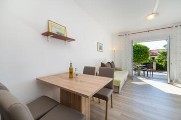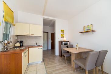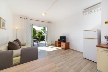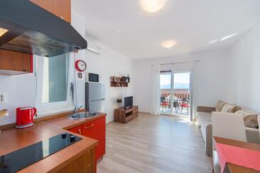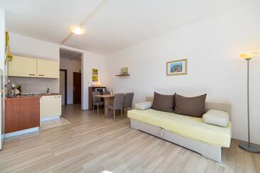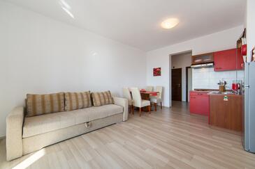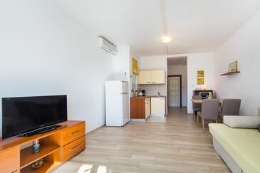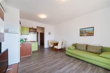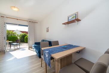 Az Apartman 4 főt tud fogadni. Az ágyak a/az 1 hálószobában, és a nappaliban/ben vannak, melynek méretei 42m2. A forró nyári estéket a vendégek saját teraszukon élvezhetik. A közös barbecue-helyet a vendég szabadon használhatja. A szállásegységbe lehetséges háziállatot hozni, ennek költségét a foglalási díj tartalmazza.