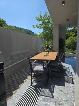 Az Apartman 9 főt tud fogadni. Az ágyak a/az 4 hálószobában, és a nappaliban/ben vannak, melynek méretei 162m2. A forró nyári estéket a vendégek saját teraszukon élvezhetik. Az apartmanból tengerre néző kilátás nyílik. A közös barbecue-helyet a vendég szabadon használhatja.