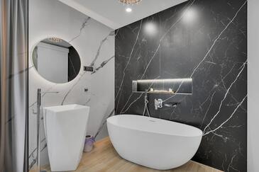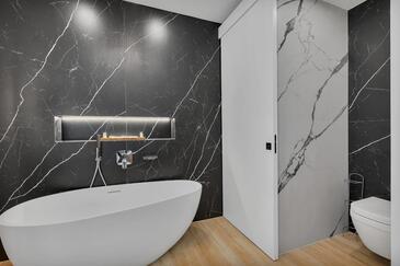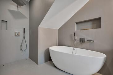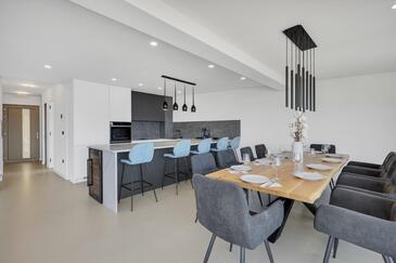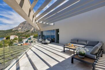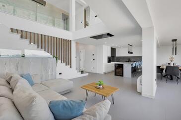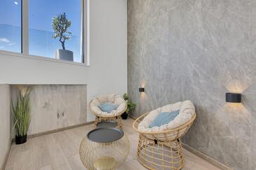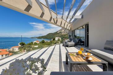 Az Apartman 8 főt tud fogadni. Az ágyak a/az 4 hálószobában vannak, melynek méretei 162m2. A forró nyári estéket a vendégek saját teraszukon élvezhetik. Az apartmanból tengerre néző kilátás nyílik. A közös barbecue-helyet a vendég szabadon használhatja. A szállásegységbe lehetséges háziállatot hozni felár ellenében.