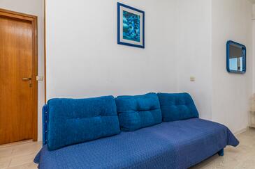 Az Apartman 3 főt tud fogadni. Az ágyak a/az 1 hálószobában, és a nappaliban/ben vannak, melynek méretei 29m2. A forró nyári estéket a vendégek saját teraszukon élvezhetik. Az apartmanból tengerre néző kilátás nyílik. A közös barbecue-helyet a vendég szabadon használhatja. A szállásegységbe lehetséges háziállatot hozni felár ellenében.