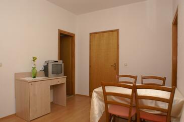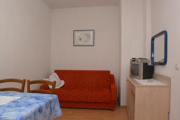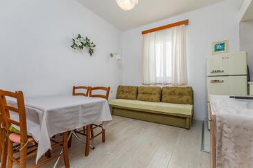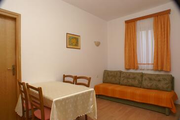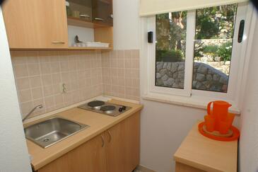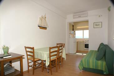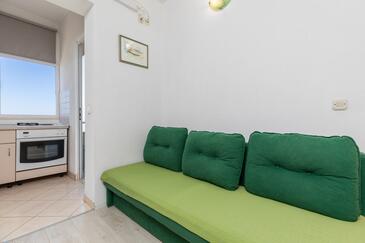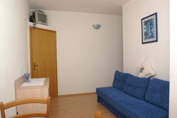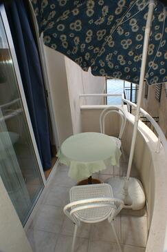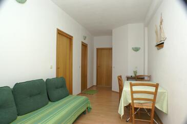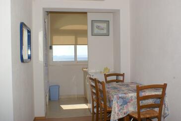 Az Apartman 3 főt tud fogadni. Az ágyak a/az 1 hálószobában, és a nappaliban/ben vannak, melynek méretei 29m2. A forró nyári estéket a vendégek saját teraszukon élvezhetik. Az apartmanból tengerre néző kilátás nyílik. A közös barbecue-helyet a vendég szabadon használhatja. A szállásegységbe lehetséges háziállatot hozni felár ellenében.