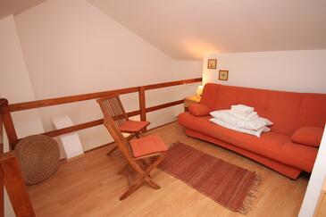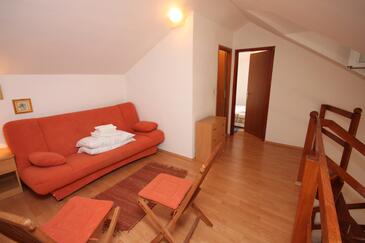 Az Apartman 8 főt tud fogadni. Az ágyak a/az 2 hálószobában, és a nappaliban/ben vannak, melynek méretei 72m2. A forró nyári estéket a vendégek saját teraszukon élvezhetik. Az apartmanból tengerre néző kilátás nyílik. A közös barbecue-helyet a vendég szabadon használhatja. A szállásegységbe lehetséges háziállatot hozni felár ellenében.