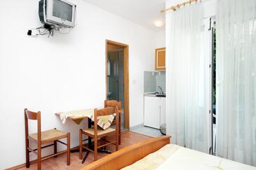 Az Apartman 4 főt tud fogadni. Az ágyak a/az 1 hálószobában, és a étkezőban/ben vannak, melynek méretei 36m2. A forró nyári estéket a vendégek saját teraszukon élvezhetik. Az apartmanból tengerre néző kilátás nyílik. A közös barbecue-helyet a vendég szabadon használhatja.