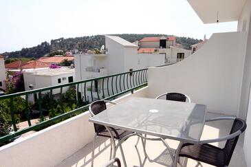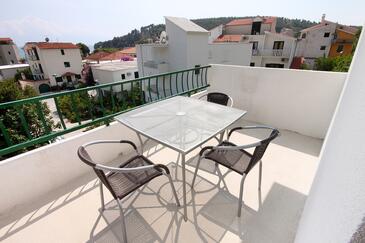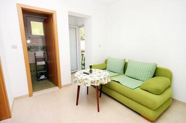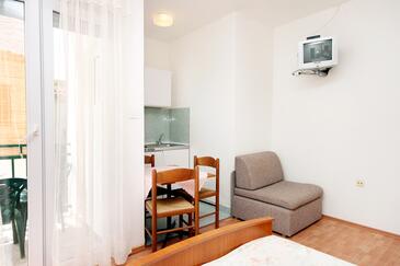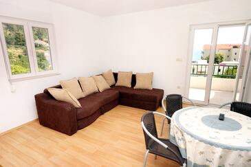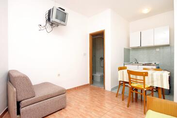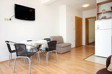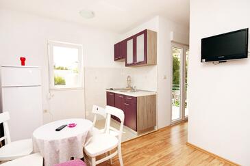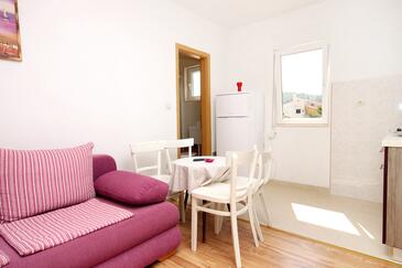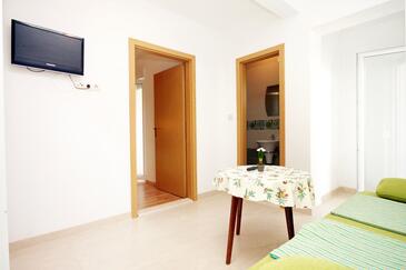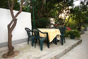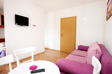 Az Apartman 4 főt tud fogadni. Az ágyak a/az 1 hálószobában, és a étkezőban/ben vannak, melynek méretei 36m2. A forró nyári estéket a vendégek saját teraszukon élvezhetik. Az apartmanból tengerre néző kilátás nyílik. A közös barbecue-helyet a vendég szabadon használhatja.