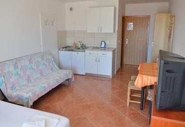 Az Apartman 4 főt tud fogadni. Az ágyak a/az 1 hálószobában, és a nappaliban/ben vannak, melynek méretei 27m2. A forró nyári estéket a vendégek saját balkonukon élvezhetik. Az apartmanból tengerre néző kilátás nyílik. A közös barbecue-helyet a vendég szabadon használhatja.