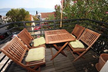 Az Apartman 6 főt tud fogadni. Az ágyak a/az 2 hálószobában, és a étkezőban/ben vannak, melynek méretei 41m2. A forró nyári estéket a vendégek saját balkonukon élvezhetik. Az apartmanból tengerre néző kilátás nyílik. A szállásegységbe lehetséges háziállatot hozni felár ellenében.