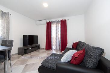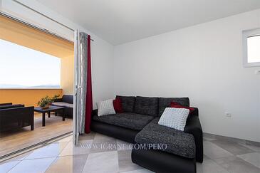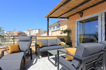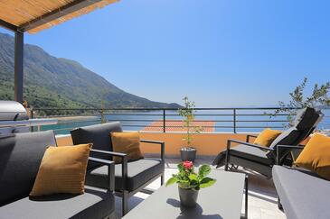Az Apartman 6 főt tud fogadni. Az ágyak a/az 2 hálószobában, és a nappaliban/ben vannak, melynek méretei 53m2. A forró nyári estéket a vendégek saját teraszukon élvezhetik. Az apartmanból tengerre néző kilátás nyílik. A teljes élvezet és kikapcsolódás érdekében van saját barbecue hely is, csakis e szálláshely vendégei számára.