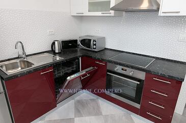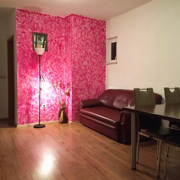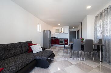 Az Apartman 6 főt tud fogadni. Az ágyak a/az 2 hálószobában, és a nappaliban/ben vannak, melynek méretei 53m2. A forró nyári estéket a vendégek saját teraszukon élvezhetik. Az apartmanból tengerre néző kilátás nyílik. A teljes élvezet és kikapcsolódás érdekében van saját barbecue hely is, csakis e szálláshely vendégei számára.
